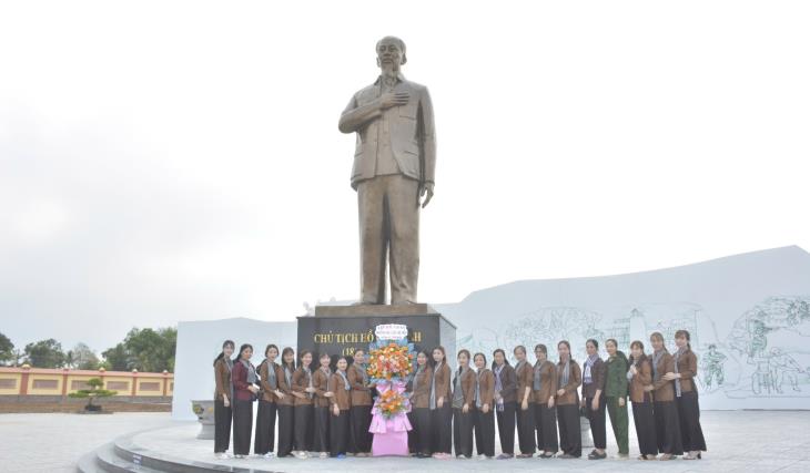 Giáo viên Trường mẫu giáo thị trấn Vĩnh Thuận, huyện Vĩnh Thuận, về nguồn dâng hoa báo công lên Bác Hồ kính yêu tại Tượng đài Chủ tịch Hồ Chí Minh.
