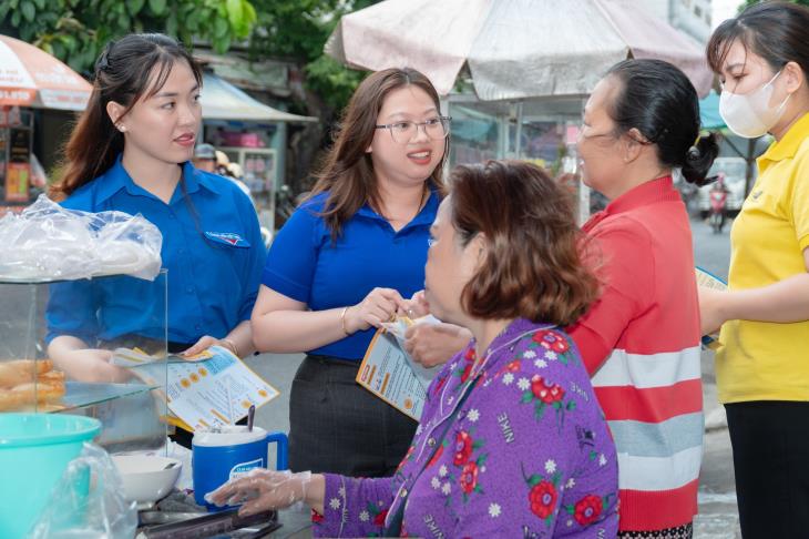 Đoàn viên thanh niên tư vấn cho người dân chính sách bảo hiểm xã hội, bảo hiểm y tế.
