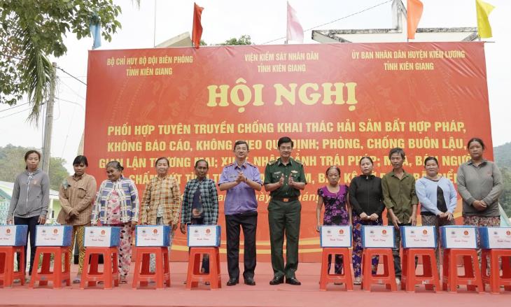 Lãnh đạo Viện Kiểm sát nhân dân tỉnh Kiên Giang và Bộ Chỉ huy Bộ đội Biên phòng tỉnh, tặng quà hộ dân có hoàn cảnh khó khăn trên địa bàn huyện Kiên Lương.